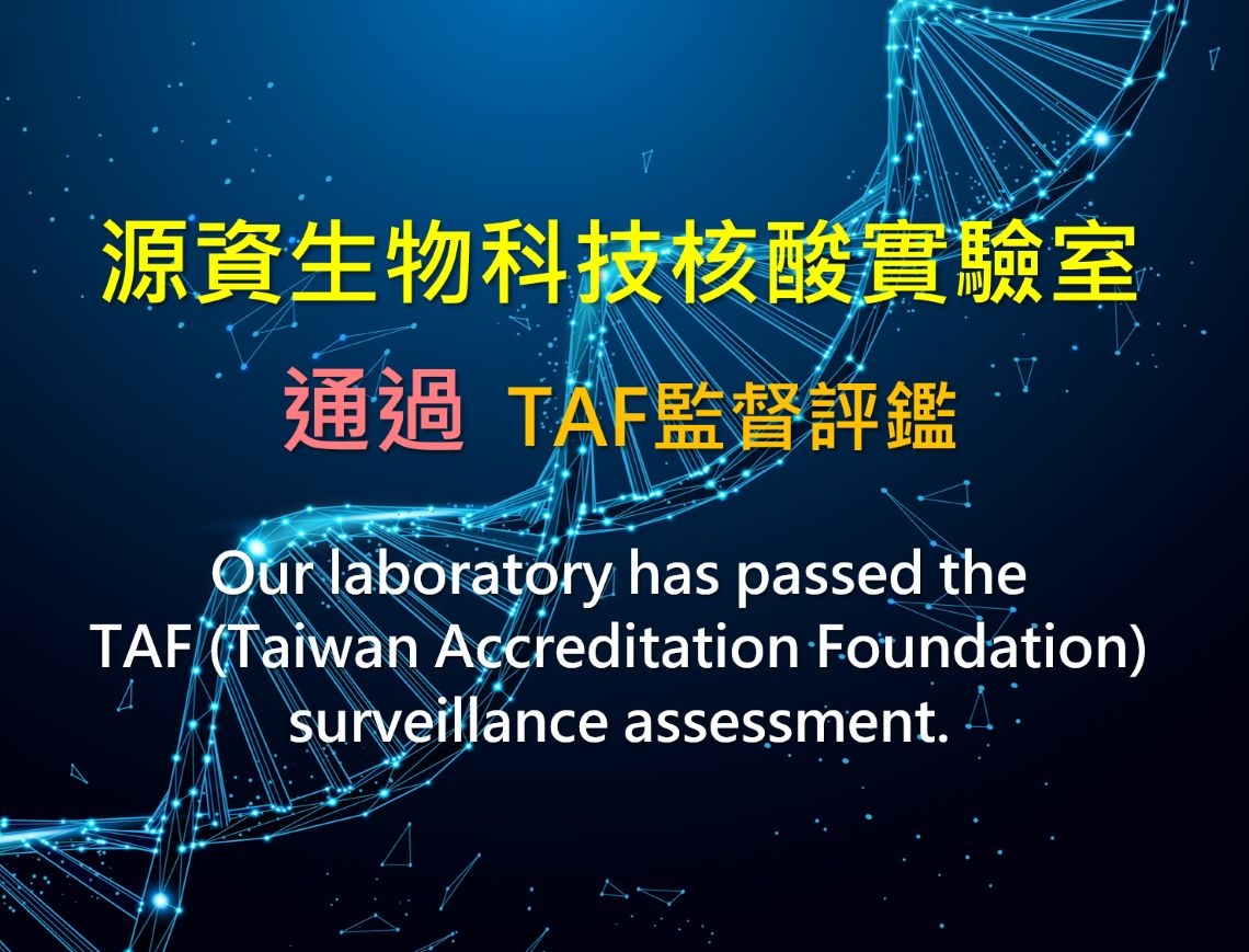 賀 !!! 源資生物科技核酸實驗室 通過 TAF監督評鑑 !!!