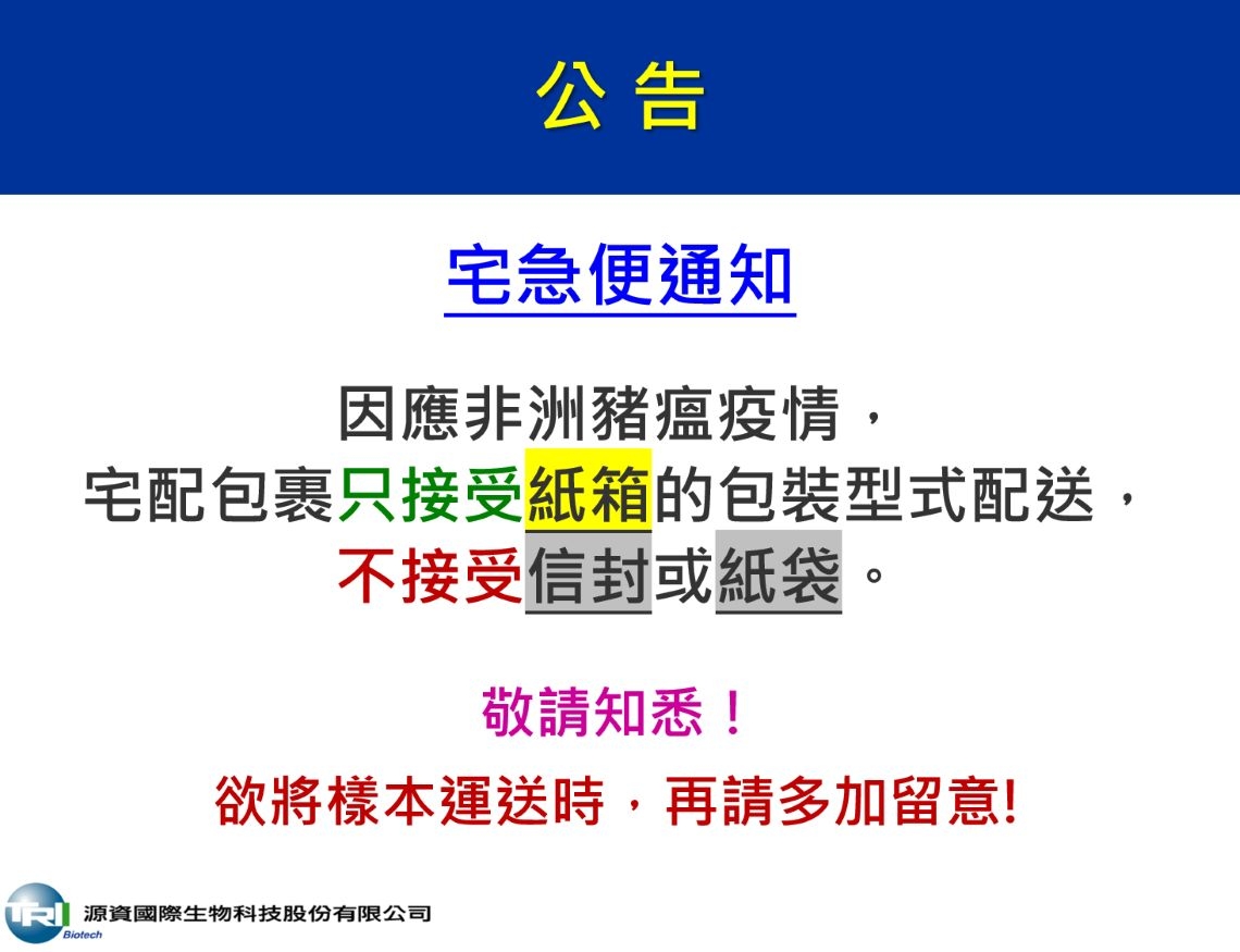 【宅急便通知】因應非洲豬瘟疫情,宅配包裹只接受紙箱的包裝型式配送